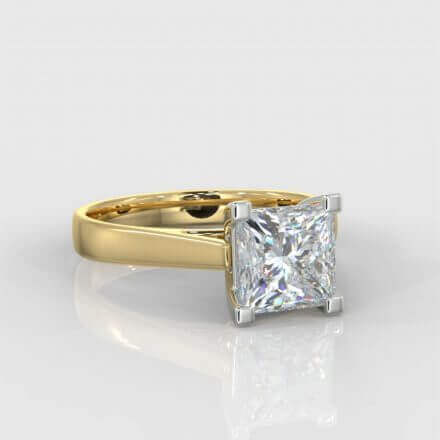 Princess cut diamond solitaire ring set in 18K yellow gold band & 18K white gold setting. The centre diamond is a 0.70ct princess cut diamond set in a four-claw setting on a classic solitaire band. The IGI certified diamond is D in colour with SI2 clarity the centre diamond can be changed to any diamond colour, size, or clarity depending on your budget and taste. This ring is also available with a lab created diamond This ring makes the perfect token of love for all occasions . Have something else in mind ?