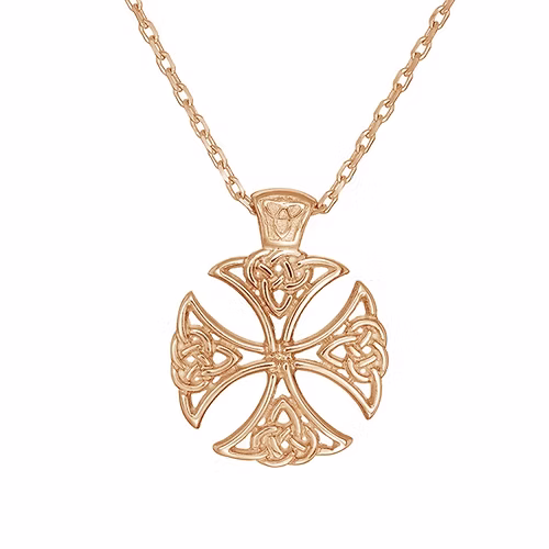 9ct Rose Gold Celtic Shield Cross Necklace