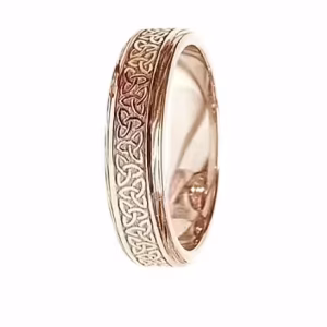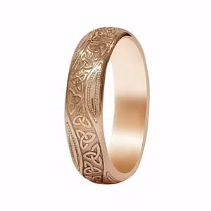 Signature celtic wedding band in 14ct Gold. This piece is truly unique, it has been meticouly decorated with a stunning trinity knot pattern. Each Piece has been made with passion in our factory in the heart of Dublin’s Temple Bar and hallmarked in Ireland’s historic Dublin Castle.