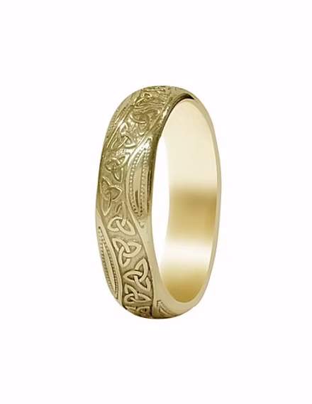 Signature celtic forever love wedding band in 14ct Gold. Available in Yellow, Rose and White Gold. This piece is truly unique, it has been meticouly decorated with a stunning trinity knot pattern. Each Piece has been made with passion in our factory in the heart of Dublin’s Temple Bar and hallmarked in Ireland’s historic Dublin Castle. All pieces purchased from Celtic Passion will come in bespoke packaging which is 100% recyclable.